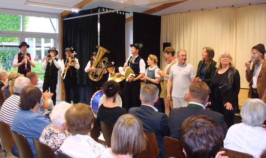 Zum Abschied überreichte Bürgermeister Roland Grillmeier an Michael Lerchenberg einen Mitterteicher Zoiglkrug. Jeder der Mitwirkenden bekam ein "Brotzeitpaket" mit einem von der Bäckerei Sölch gebackenem "Hankerlbrot" und einem Geräucherten. Nach dem Auftritt in der Grundschule zog die Luisenburg-Truppe ins Mehrgenerationenhaus weiter, wo der Arbeitskreis Heimatpflege Zoigl und Brotzeit mit Musik von Hubertus Krämer servierte.