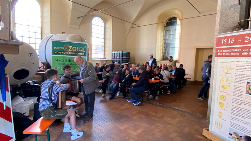 Beide Zoiglstuben freuten sich über viele Gäste, darunter auch viele von auswärts, die die Busverbindung zu den fünf Zoiglorten nutzten. Geöffnet hatte in Mitterteich auch das Kommunbrauhaus, wo es spannende Führungen durch den Historischen Arbeitskreis gab. Dort spielte am Nachmittag das Duo „Daniel und Max" auf.In Falkenberg hatten die beiden Zoiglstuben „Hafnerkarl" und „Kramer Wolf" geöffnet. In beiden Locations gab es musikalische Umrahmung, mit der „Falkenberger Karpfenmusik" und den „Heusterz-Musikanten". Beim „Hafnerkarl" nutzten viele Gäste die Möglichkeit draußen zu sitzen und genossen dort das einmalige Flair einer Zoiglwirtschaft. Klar, dass beide Wirtschaften für das leibliche Wohl bestens gesorgt hatten. Neben Brotzeiten, gab es auch Kuchen und die legendären Käichla. Stark nachfragt waren im Falkenberger Kommunbrauhaus die Führungen, wo im Detail die Zoiglherstellung erklärt wurde. Geöffnet hatte auch die Burg und der Biergarten im Burghof, dort gab es sogar ein eigenes Kinderprogramm und das Burggespenst trieb sich herum.