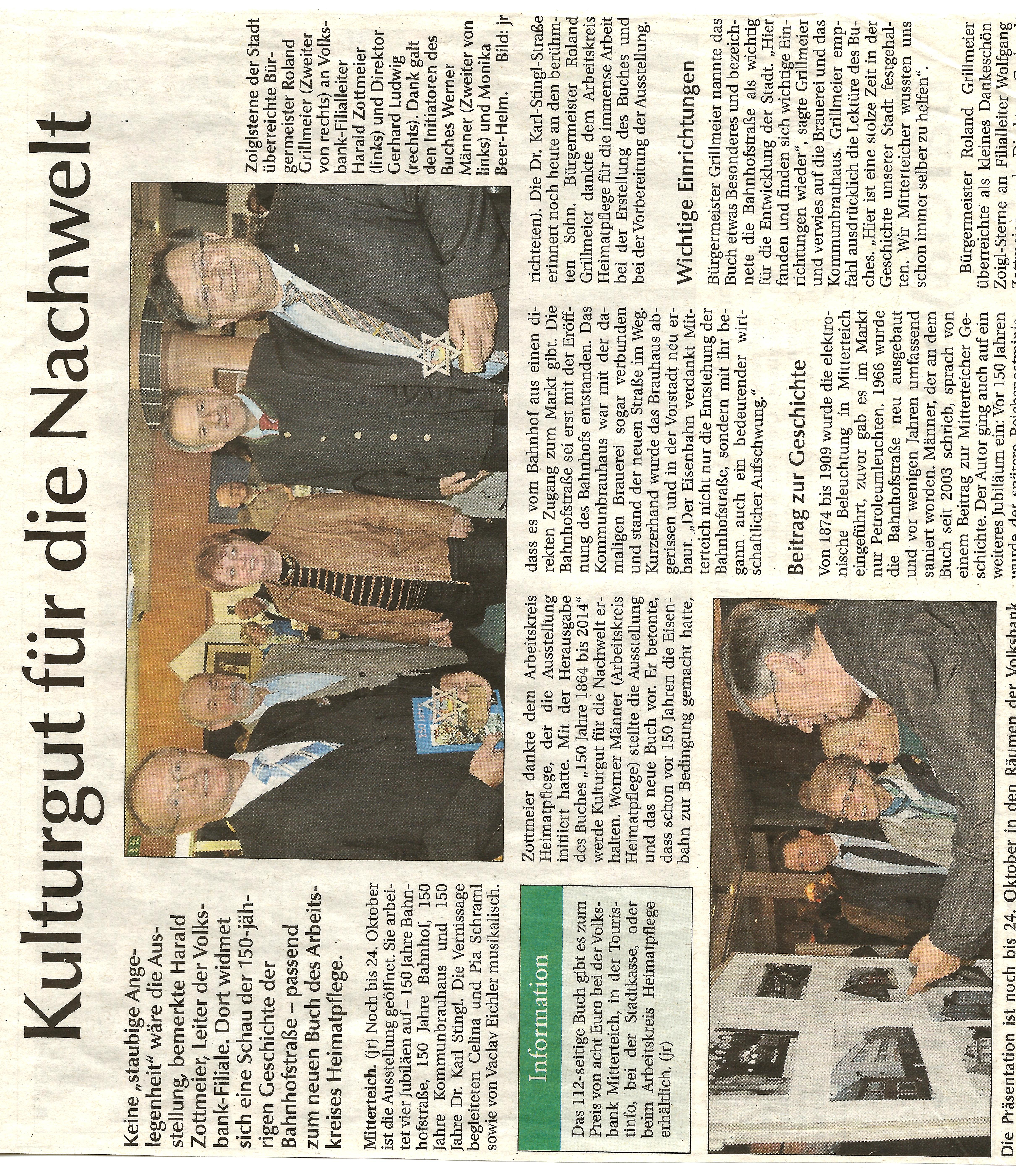 Kulturgut für die Nachwelt03.12.2025 Keine „staubige Angelegenheit" wäre die Ausstellung, bemerkte Harald Zottmeier, Leiter der Volksbank-Filiale. Dort widmet sich eine Schau der 150-jährigen Geschichte der Bahnhofstraße - passend zum neuen Buch des Arbeitskreises Heimatpflege.