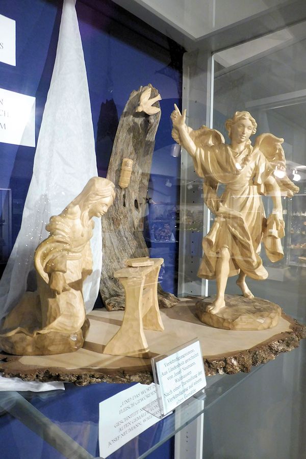 Von Dr. Annemarie Schraml stammen afrikanische Krippen, die Darstellungen aus Gegenden wie Kamerun und Tansania zeigen. Im Mittelpunkt stehen die klassischen Krippen aus Deutschland, so auch eine einmalig schöne Porzellankrippe. Weitere Krippen zur Ausstellung stammen von Ernst Zeitler, eine Familienkrippe von Karin Buchmann sowie eine Krippe von Friedrich Stingl. Abschließender Dank galt dem Museumsteam, der Firma Schott und dem Modehaus Zeitler, "für die großartig gewährte Unterstützung im Vorfeld der Ausstellung". Dr. Annemarie Schraml berichtete: "Die Idee zu dieser Ausstellung kam mir vor zwei Jahren, bei der traditionellen Mitterteicher Schnitzerausstellung." Sie freute sich, dass sie aus dem Nachlass ihres verstorbenen Mannes fast 80 Krippen präsentieren darf. "Mein Mann war zeitlebens tief beeindruckt, dass Gott in einem kleinem Kind Mensch geworden ist. Vieles, was Sie hier sehen, hat er auf Flohmärkten erstanden." Besonders wies sie auf eine "Szene der Verkündigung" hin, die einst Josef Neumann aus Waldsassen geschnitzt hat. Im Laufe der Jahrzehnte hat sich die Sammlung vergrößert. Dr. Schraml: "In all den Krippen sind die menschlichen Emotionen bestimmend."