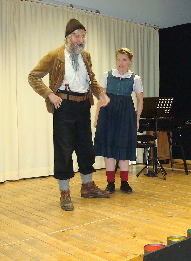 Als erstes wurde das Stück "Heidi" thematisiert, das bereits am 31. Mai Premiere hatte. Lerchenberg verwies hier auf spezielle Bemühungen, die Kinder und Jugendlichen im Publikum anzusprechen. "Für sie ist es ja oft der erste Besuch in einem professionellen Theater." Szenen-Kostproben gaben die beiden Hauptdarsteller Maria Kempken ("Heidi") und Paul Kaiser ("Alm-Öhi"). Regie führt übrigens die Ehefrau des Intendanten, Eva-Maria Lerchenberg-Thöny, die erstmals mit nach Mitterteich gekommen war.