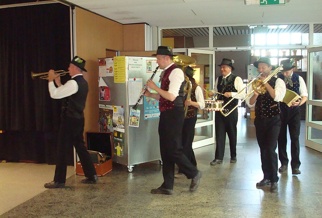 Zum Abschied überreichte Bürgermeister Roland Grillmeier an Michael Lerchenberg einen Mitterteicher Zoiglkrug. Jeder der Mitwirkenden bekam ein "Brotzeitpaket" mit einem von der Bäckerei Sölch gebackenem "Hankerlbrot" und einem Geräucherten. Nach dem Auftritt in der Grundschule zog die Luisenburg-Truppe ins Mehrgenerationenhaus weiter, wo der Arbeitskreis Heimatpflege Zoigl und Brotzeit mit Musik von Hubertus Krämer servierte.