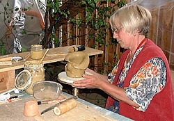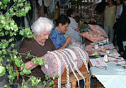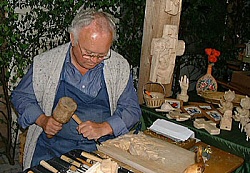 Mittlerweile hatten sich auch die Handwerker in der Handwerkerstube eingerichtet. So waren vertreten: Hardangersticken, Klöppeln, Filzen, Schuster, Töpfer, Schreiner, Bildhauer, Schnitzer, Schneider, Schmied, Maler und Korbflechter. Auch eine kleine Sammlung an alten Dampfmaschinen (2. Bild v. oben) war zu bewundern. Für die Kinder war eine riesige Hüpfburg aufgebaut und ein Streichelzoo mit kleinen Schafen und Kaninchen zog vor allem die ganz kleinen Gäste an.