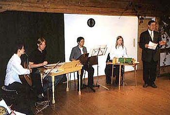 Wer geglaubt hatte, Hackbrett, Zither und akustische Gitarre seien nur für den Bereich der ernsten Musik, der Volksmusik oder für Weihnachtsmusik geschaffen, der mußte an diesem Abend erkennen, wie auch ein modernes Lied, wie das berühmte "Sailing" von Rod Stewart, auf scheinbar "alten" Instrumenten interpretiert werden kann. Der Leiter der Kreismusikschule, Max Schnurrer, erläuterte zwischen den Stücken sowohl die Geschichte der Volksmusik als auch die der Instrumente.