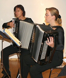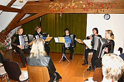 Susanne Albert, Karin Gründl, Andrea Reinkraut (alle Mitterteich), Christa Polata und die Leiterin der Musikgruppe, Silke Polata (beide Waldsassen), nahmen die Zuhörer mit auf eine Zeitreise, ausgehend vom Barock hin zur modernen Popmusik. Dies zeigt nicht nur den hohen Anspruch, den sich die fünf Musikerinnen gesetzt haben, sondern das hohe Niveau, dem sie als Mitglieder des Akkordeonorchesters Waldsassen mitunter genügen müssen. Das erkannten auch einige im Publikum. Diese sehr interessierten und vermutlich musikalisch bewanderten Besucher bezeichneten beim anschließenden gemütlichen Beisammensein die Darbietungen und das Können des Quartetts als "sehr hochwertig".