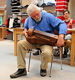 und begleitete sich dazu auf der Drehleier. Der Beifall der Zuhörer war ihm gewiss.